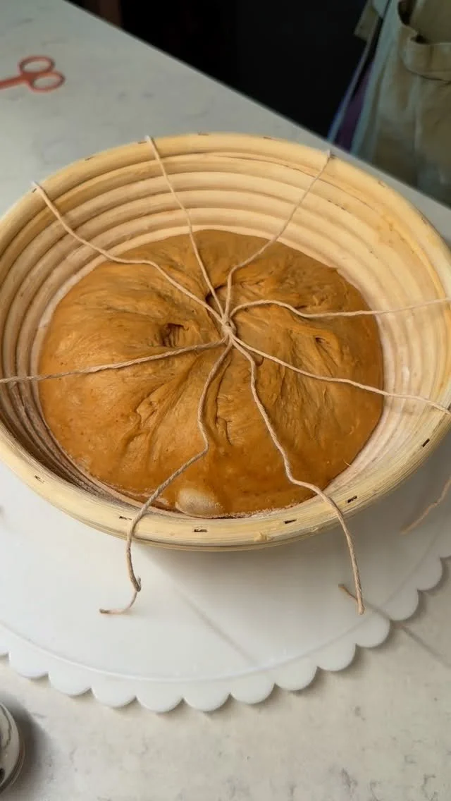 Both loaves were pre-shaped and rested for 20 minutes, then final shape into bannetons, rested 10 minutes, and into fridge for cold retard overnight.